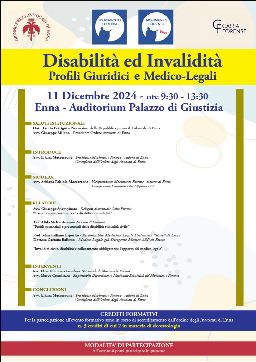 CALENDARIO LEZIONI SCUOLA FORENSE DI ENNA SEMESTRE: NOVEMBRE-APRILE 2025 Per saperne di più su CALENDARIO LEZIONI SCUOLA FORENSE DI ENNA SEMESTRE: NOVEMBRE-APRILE 2025